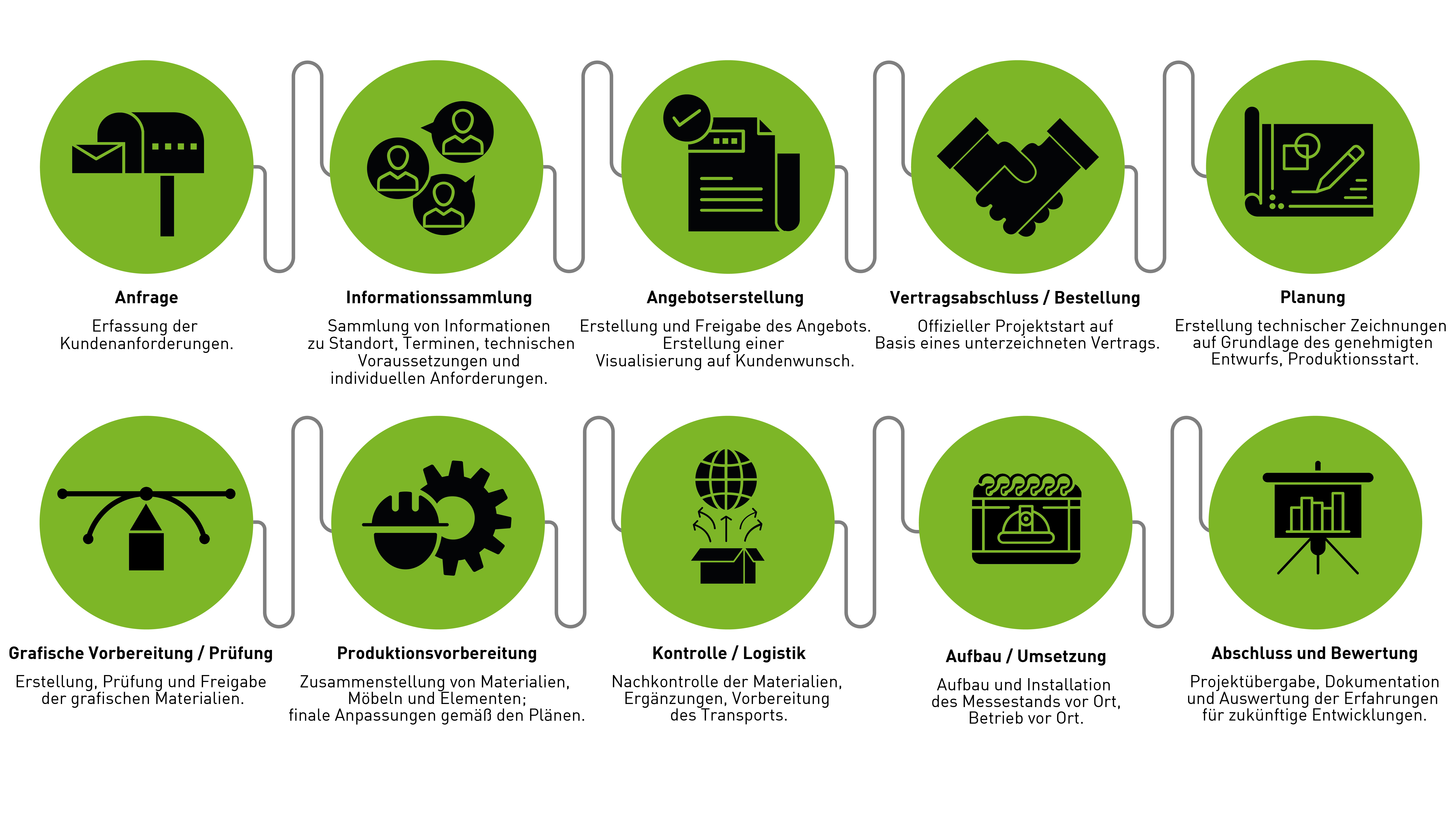 • Zuverlässigkeit und Termintreue – Messetermine sind fix. Unsere gesamte Arbeitsstruktur ist auf präzise Planung und pünktliche Realisierung ausgerichtet.